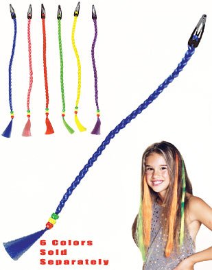 These blue braided hair extensions are a great economy accessory for any costume, but like Oh My God they are so totally awesome for 1980s hip hop fly-girls! What can we say...girls just want to have fun! We love them, but keep in mind that they are a fairly economy item so please don't expect something that would retail for or more - they are meant as a costume or party item, and attach with featured clip.