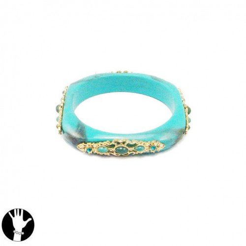 SG PARIS RIGID BRACELET GOLD TURQUOISE BLEU TURQUOISE BRACELET RIGID BRACELET RESIN WINTER WOMEN IMPERIAL REVIVAL FASHION JEWELRY / HAIR ACCESSORIES Z OTHERS